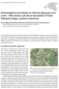 Mägi, M.; Allmäe, R.; Riiel, R.; Karro, K.; Limbo-Simovart, J. (2015). Archaeological excavations at Bronze Age grave and 6th – 10th century cult site at Saunamäe, Tõnija-Põlluküla, southern Saaremaa. Arheoloogilised välitööd Eestis = Archeological fieldwork in Estonia, 2014, 79−96.