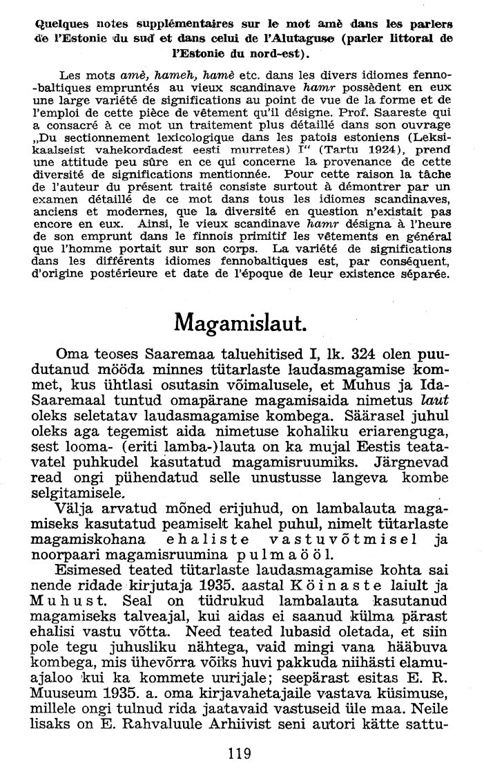 Ränk, G. (1940). Cattle-shed used for sleep (EST: Magamislaut). Emakeele Seltsi ajakiri, 119-126.