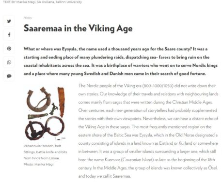 Mägi, M. (2019). Gold and Silver Artefacts From Saaremaa. (EST: Kuld- ja hõbeesemed Saaremaalt). Tutulus: Eesti arheoloogia aastakiri, 2019, 2−4. Read the article (EST): here....