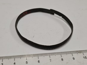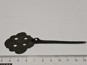 Kaarma maalinnalt saadud 13. sajandi leiudristpearinnanõel (AI-K 59: 1) ja käevõru (AI-K 59: 2).