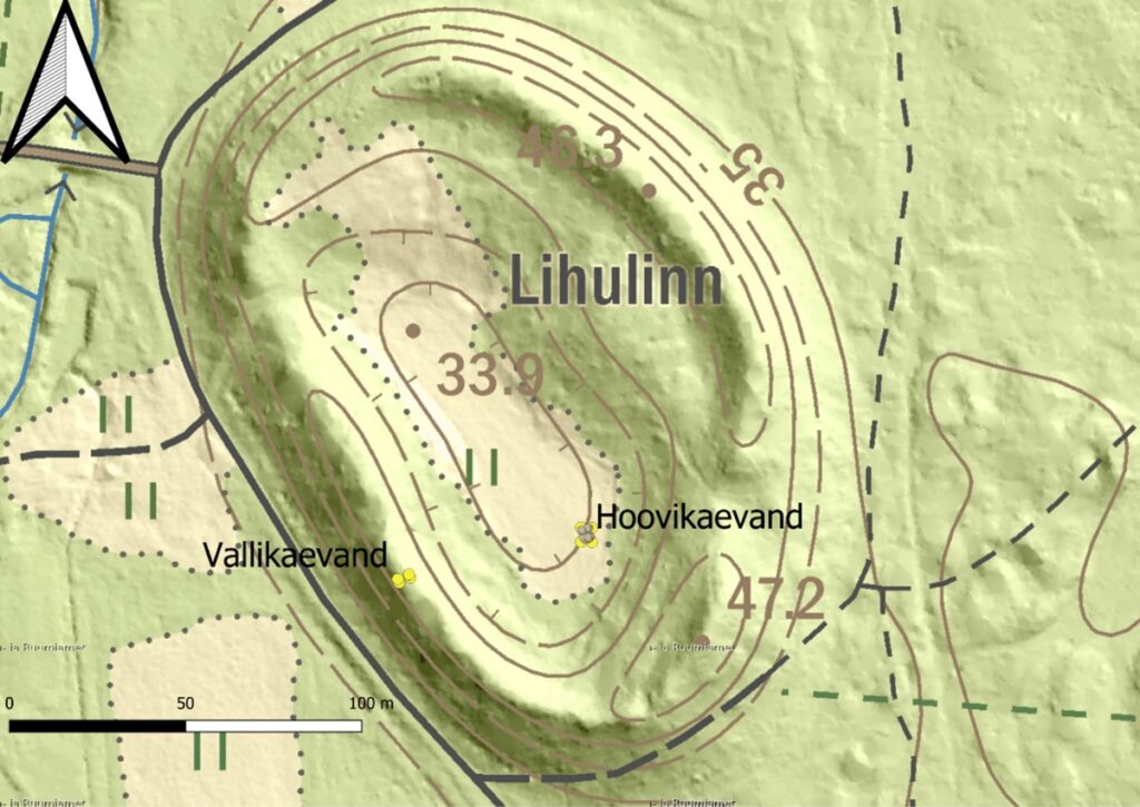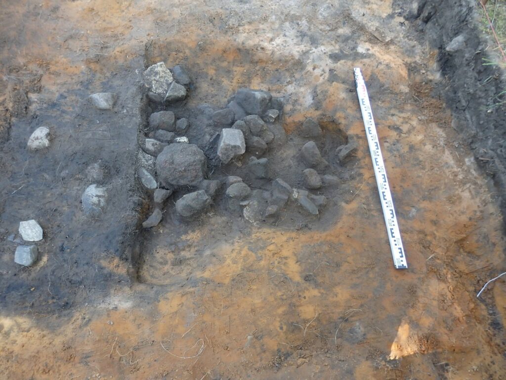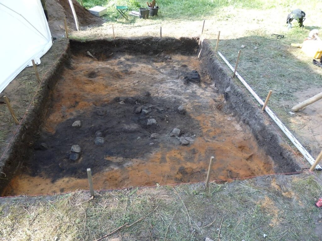 Hoovile tehtud kaevandist leiti mitmeid hilisrauaaegseid esemeid, sealhulgas keraamikat, tulekivikilde, helmeid (sh kuldfooliumiga) ja loomaluid. Kaevandi sügavamates kihtides ilmnes kividega täidetud madal lohk ja võimalik postiauk, mis võivad viidata kunagisele konstruktsioonile või ajutisele rajatisele, kuid nende funktsioon jääb ebaselgeks. Samasuguseid lohkusid on täheldanud oma uuringutes ka Jüri Peets.